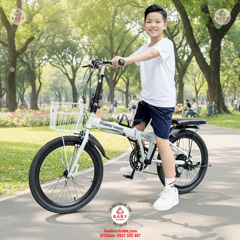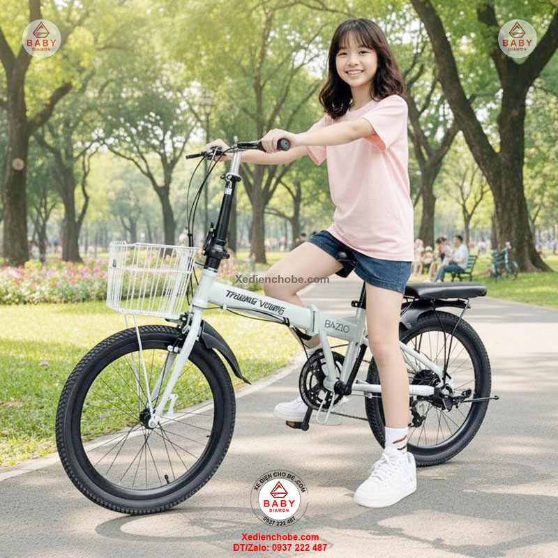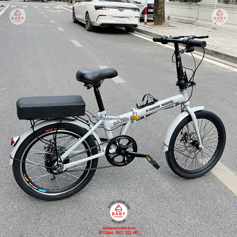 Xe đạp điện trợ lực gấp gọn Trường Vương Basic, Pin rời, thương hiệu Việt, được thiết kế kiểu dáng nhỏ gọn, thanh lịch, gấp gọn bỏ cốp ô tô đi mọi nơi, đẳng cấp phù hợp cho các cô, các chị, cho người cân nặng dưới 120 kí, xe hoạt động tốt nhất 40-70 kg, chế độ tự lái bằng bàn đạp và trợ lực điện, giúp bạn vừa chạy xe vừa tập thể dục