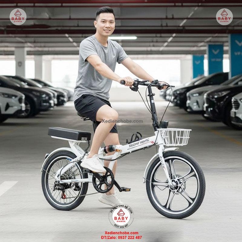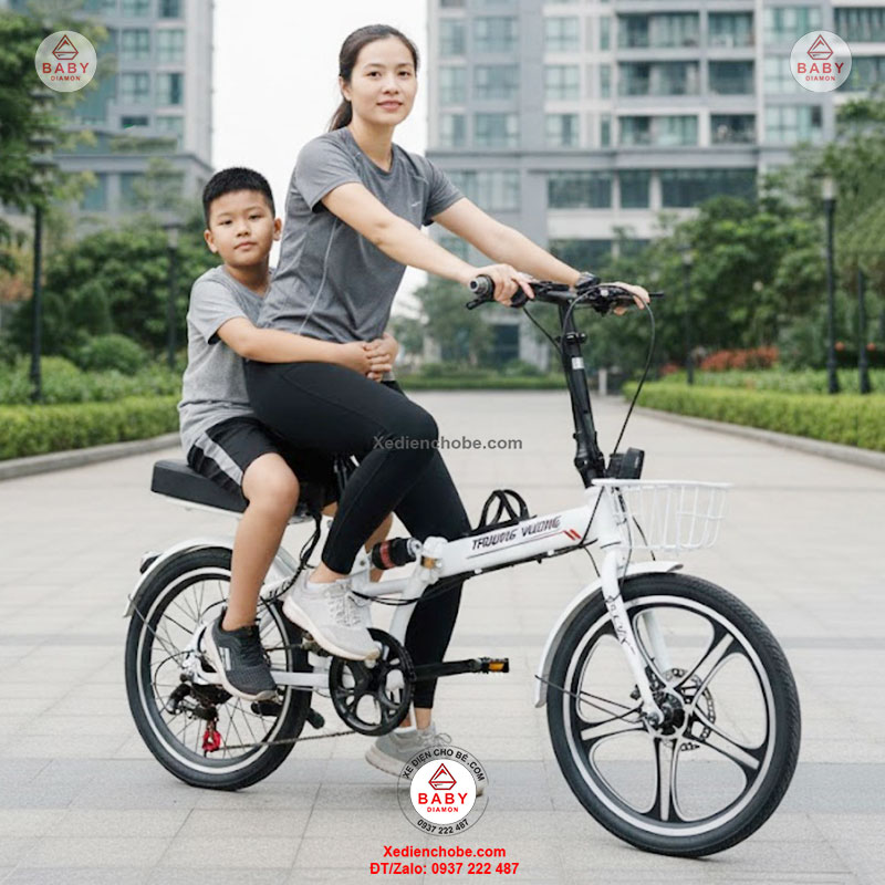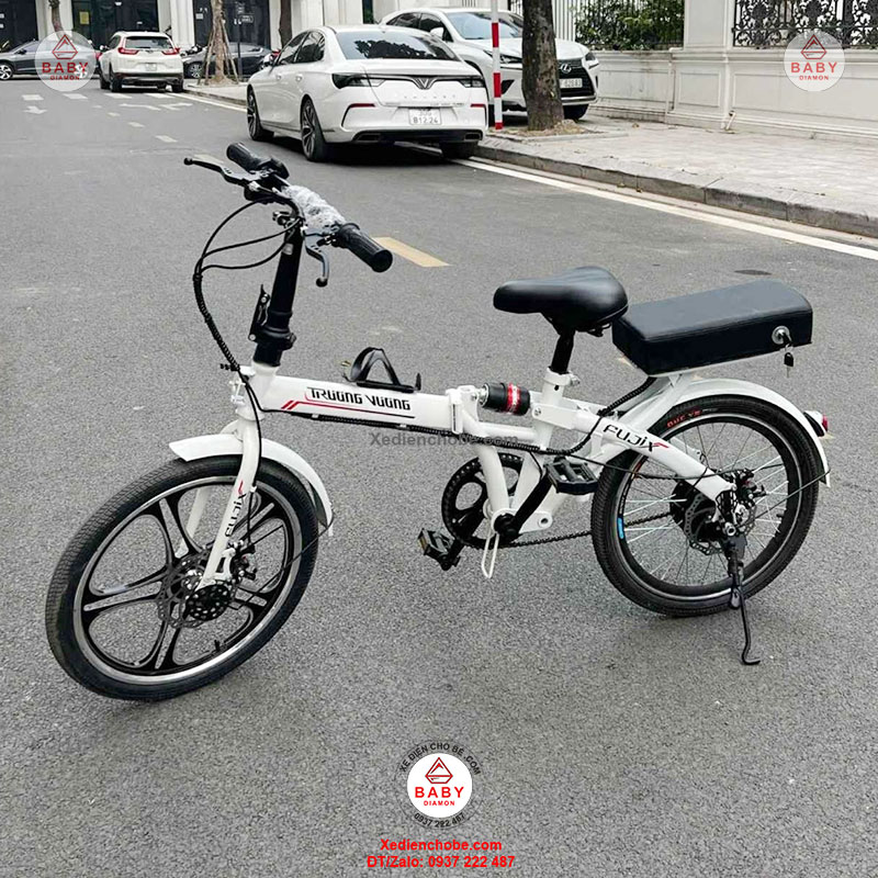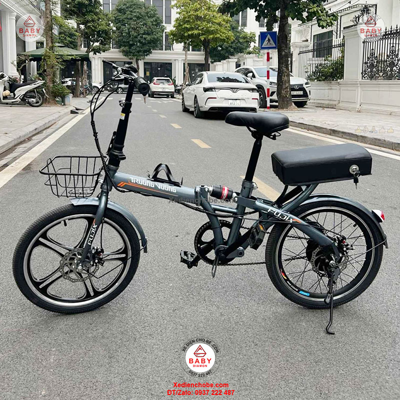 Xe đạp điện trợ lực gấp gọn Trường Vương Fujix, Pin rời, thương hiệu Việt, có giảm sóc, được thiết kế kiểu dáng nhỏ gọn, thanh lịch, gấp gọn bỏ cốp ô tô đi mọi nơi, đẳng cấp phù hợp cho các cô, các chị, cho người cân nặng dưới 120 kí, xe hoạt động tốt nhất 40-70 kg, chế độ tự lái bằng bàn đạp và trợ lực điện, giúp bạn vừa chạy xe vừa tập thể dục